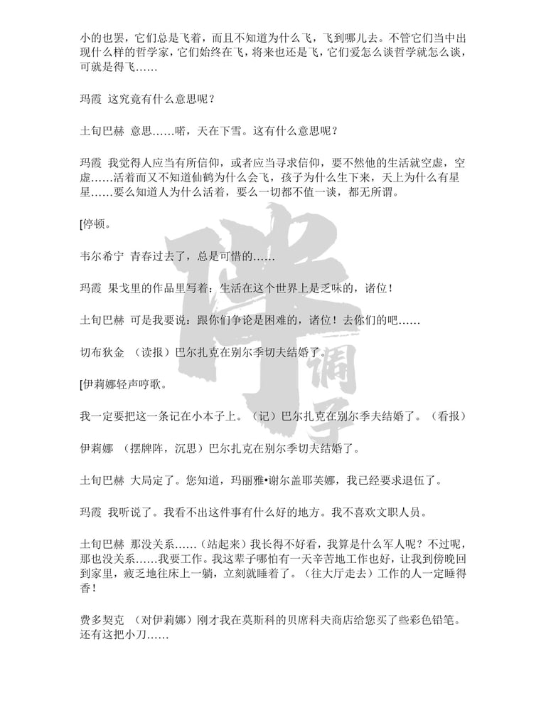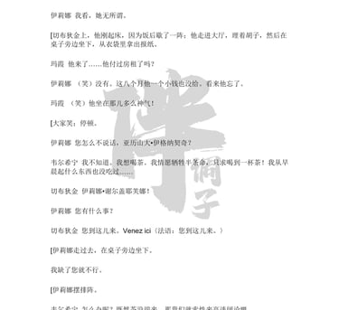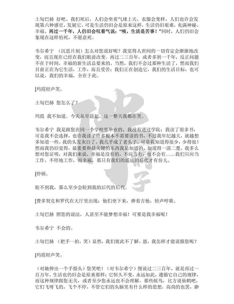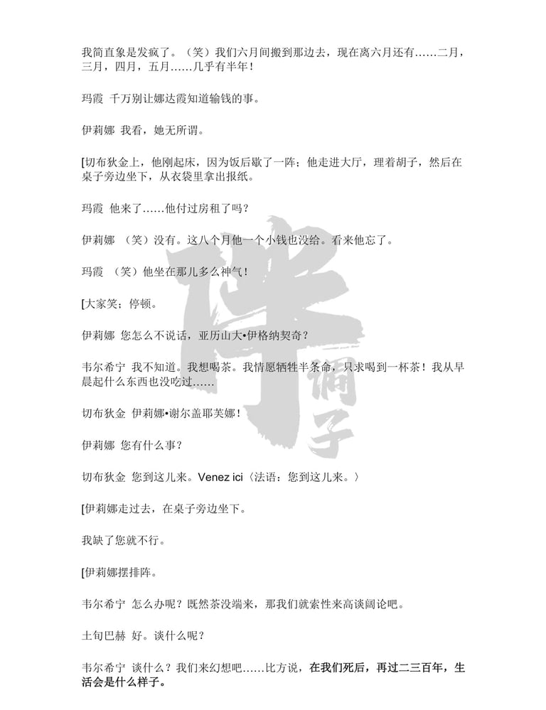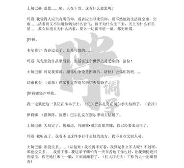 我就先不说那么多,给你们看看三页第二幕的对白,你就知道为什么改编这部剧本是多么地困难。